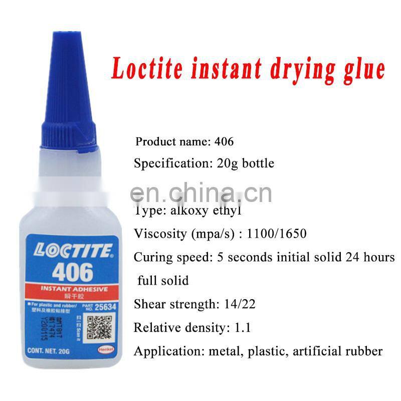 Home > Products > Super glue > 20ml Super Strong Glue Loctiter 406 Instant Glue Liquid for Plastic Rubber Metal Ceramic Repairing Not Whitish and Odorless
