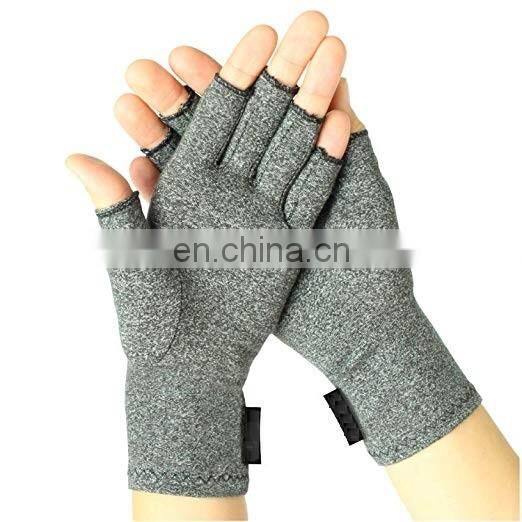 Men Women Grey Half Finger Hands Cotton Compression Arthritis Gloves For Pain Relief