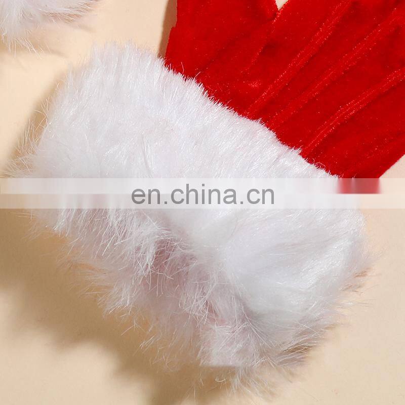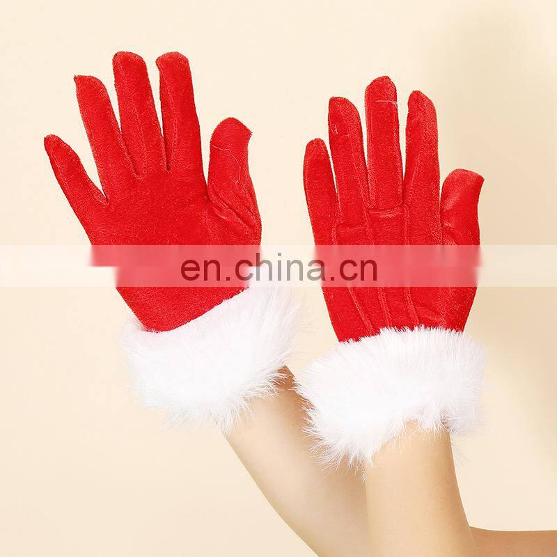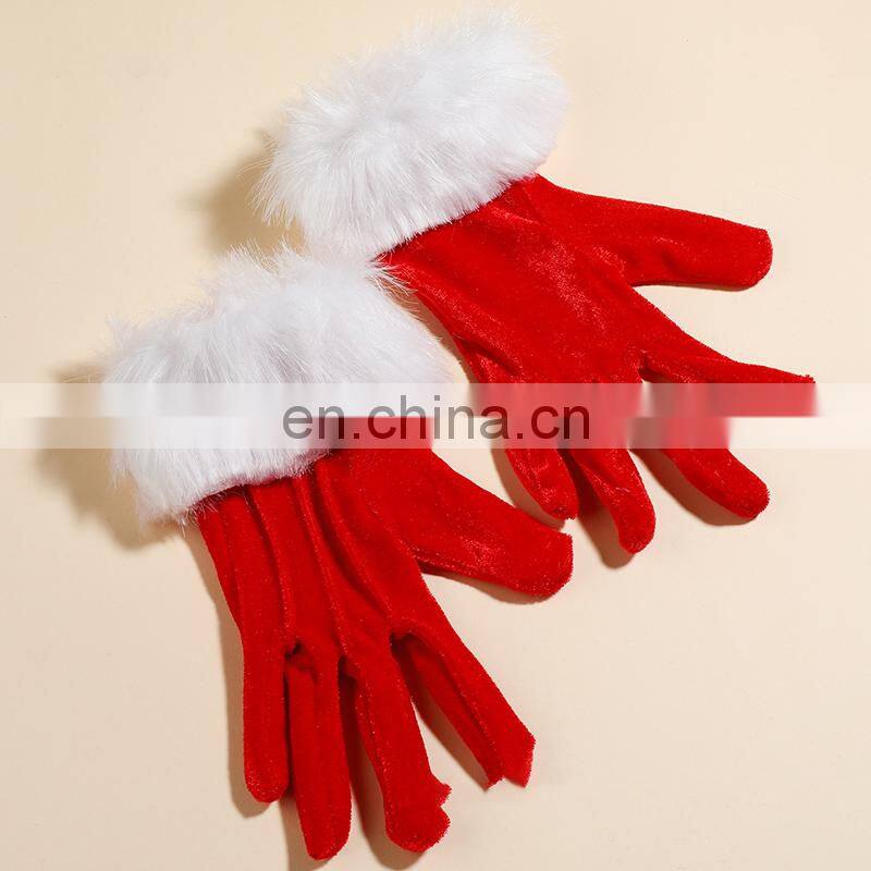 Fashion Style Party Decoration Women Ladies Teen Short Gold Velvet Santa White Fur Mouth Red Christmas Gloves