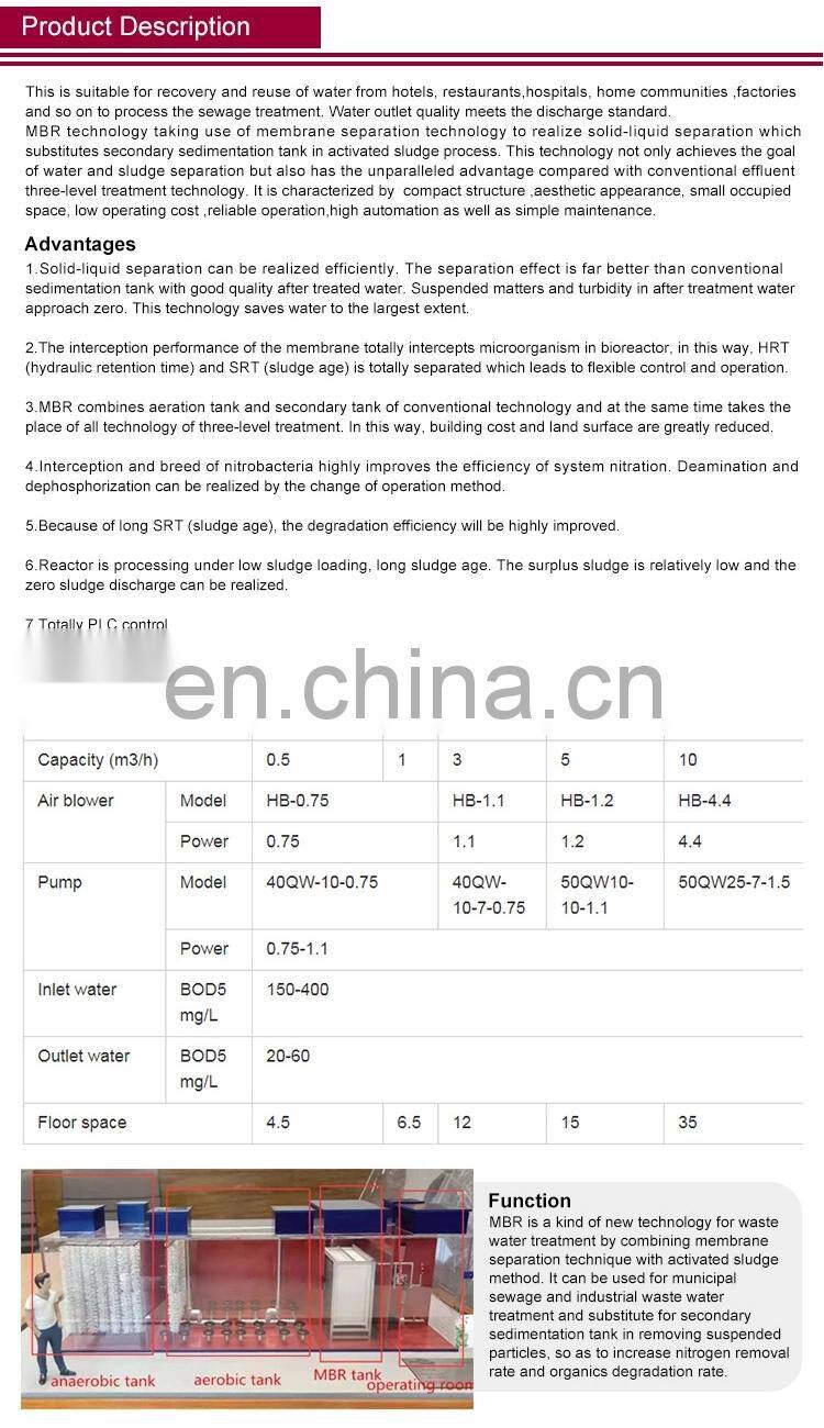 Hot Sell Hot Quality MBR Membrane Separation Process for Reclaimed Water Treatment System