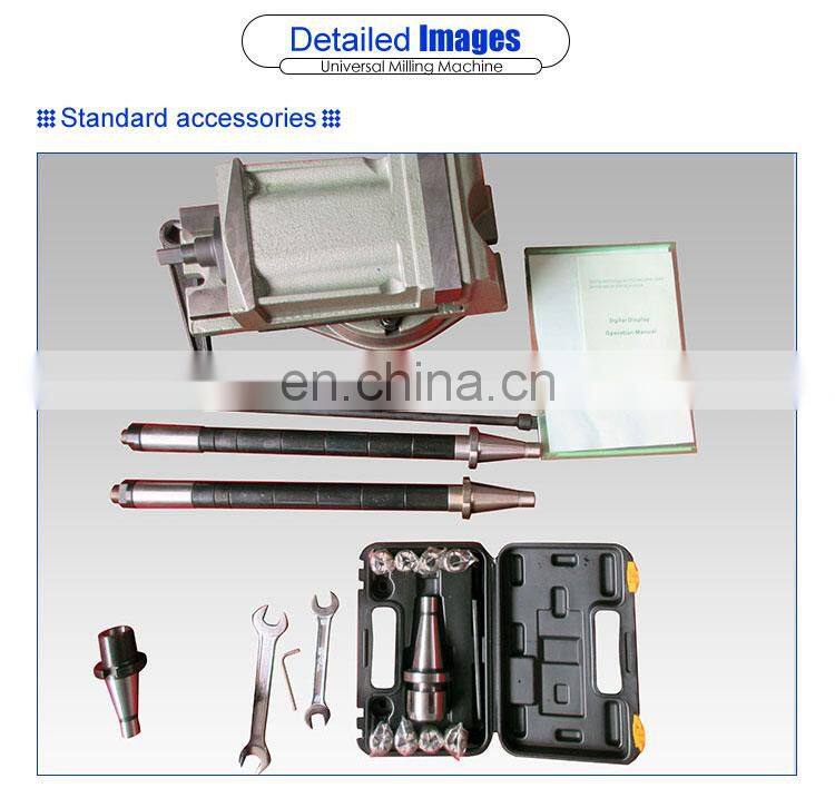 wide range ,three-axes automatic feeds, large torque and strong power,1.5KW, fast-moving 2000mm/min.Spindle taper is ISO 50.