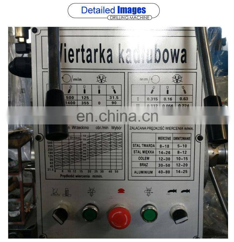 drilling, boring, tapping countersunk hole etc.. Automatic reverse feed spindle tapping and fretting, for blind and deep hole is very convenient. Widely used in machinery manufacturing, workshop production and construction processing, etc..