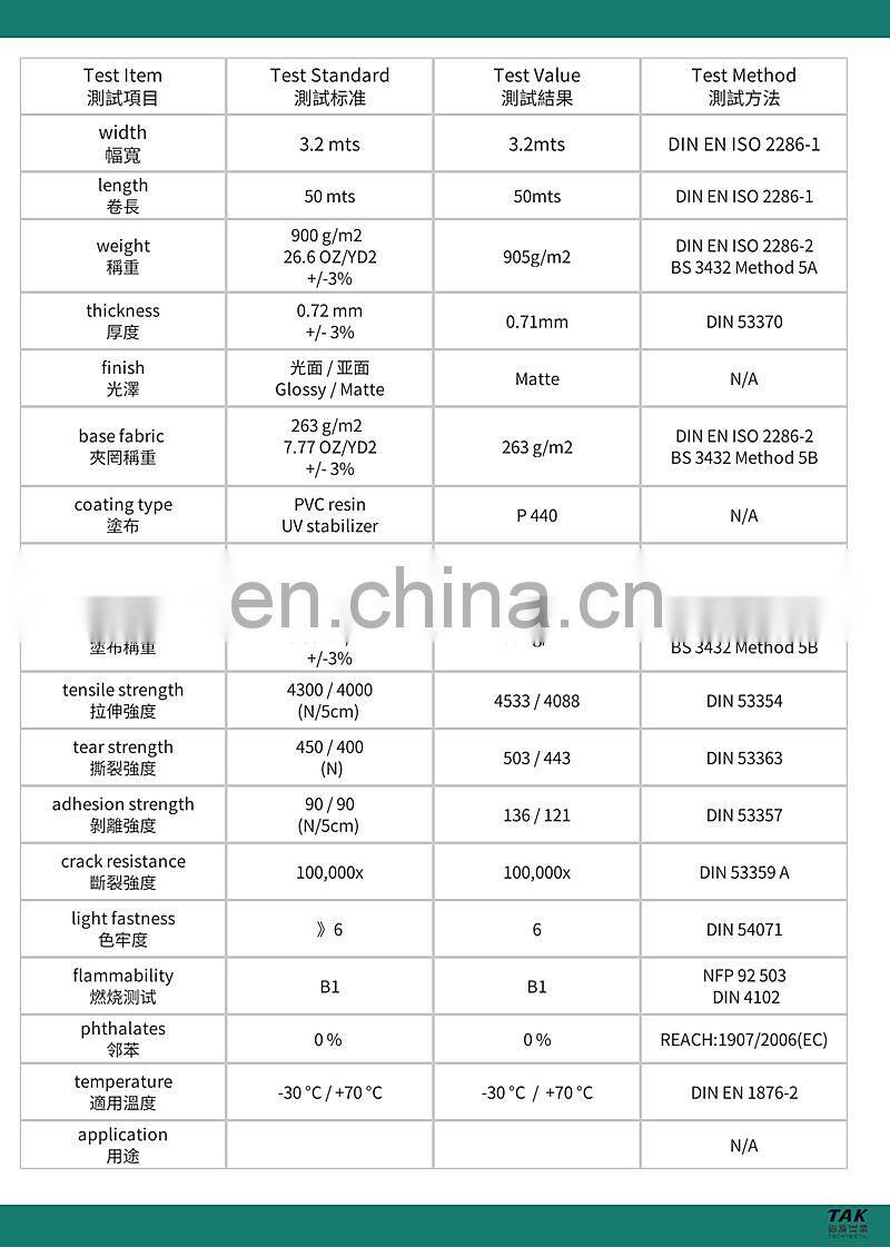 PVC Coated Tarpaulin Is Made By PVC Resin Coated Onto 1-layer Mesh Fabric. It Was Mainly Used For Sheets, Membrane, Covers, Awning, Tents, Shades, Curtains. Coated PVC Tarpaulin Could Meet Standard Flame Behaviors, Cadmium Free, En 71-3, Reach Regulations, Anti Static, And Other International Standard. PVC Tarpaulin Rolls Widths From 1.0mts -5.1mts, Weight From 240gsm -2700gsm, And Thickness From 0.19mm -2.0mm.
