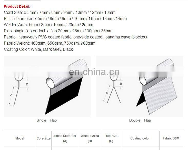 Hot Selling PVC Rope Cord Welt 6mm 8mm 9mm 10mm 12mm Tent Keder For Awning