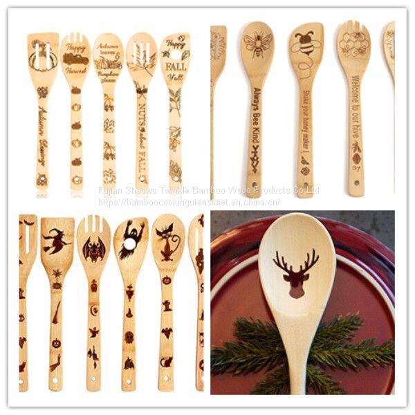 Christmas Gift for Family,bamboo Wood Utensil Set Engraved Kitchenware Customized
