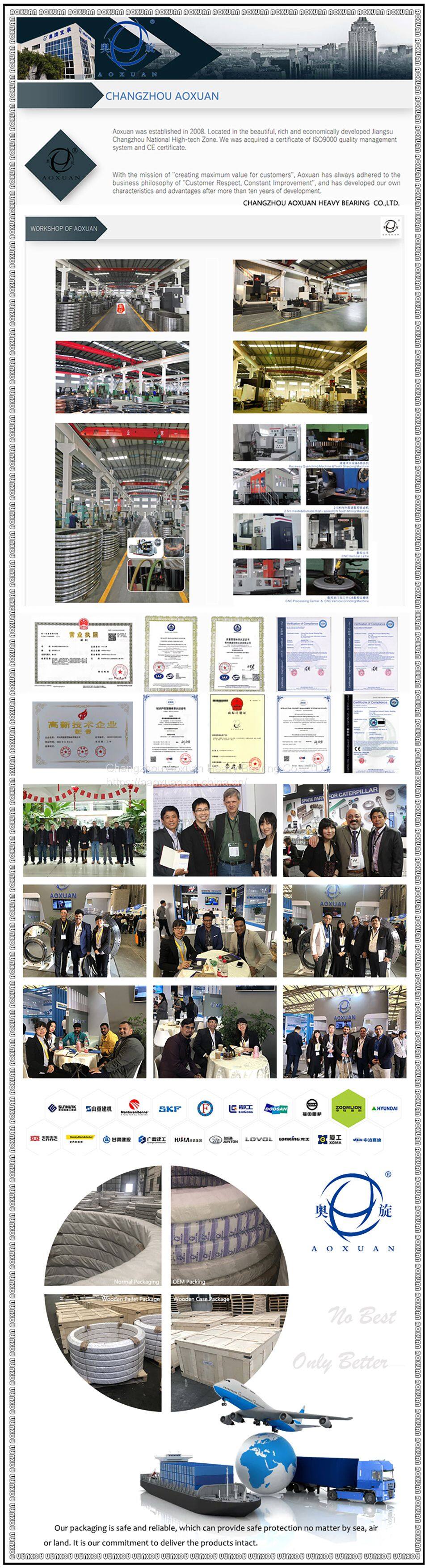 3. Changzhou Aoxuan Heavy Bearing Co., Ltd. is located in the beautiful and rich Yangtze River Delta region, with convenient transportation and obvious industrial advantages. The company covers an area of 33000 square meters, with a building area of 23000 square meters. It has more than 150 sets of production and processing equipment and testing equipment. The main products are: Single-ROW Four Point Contact Ball Slewing Ring (Series Q, Series HS, Series 01), Tri-ROW Roller Slewing Ring (Series 13), Double-ROW Slewing Ring ( Series 02), Crossed Roller Slewing Bearing ( Series J), slewing drive and precision grade cross roller bearing. It is mainly used in engineering machinery, industrial robots, port machinery, construction machinery, truck cranes, metallurgical machinery, single and double axis tracking systems for solar photovoltaic power generation systems and small wind power stations.