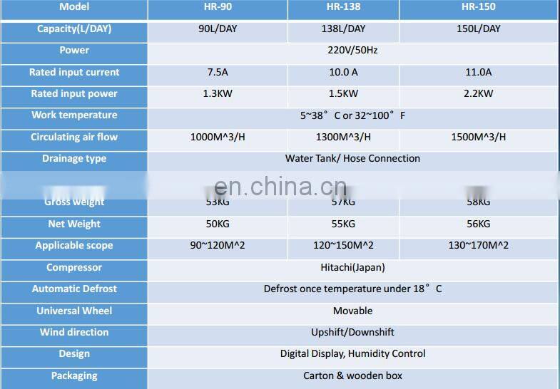 TOP 1 Advance Technology Hiross 2022 90L/D Newest Portable Commercial Dehumidifier With Muffler for Hot Sale