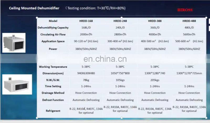 Wholesales Hot Selling Hiross Ceiling Hanging Large Capacity Dehumidifiers for Greenhouse PlantingNegotiableMOQ: 1