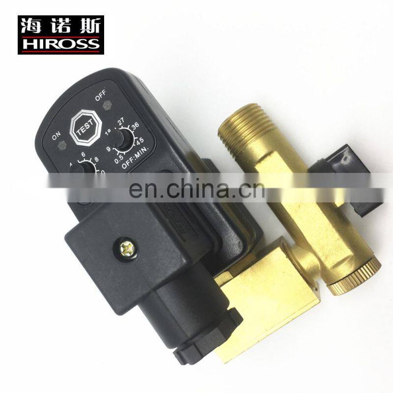 Hiross 1/2'' Compressor Auto Condensate Drain Digital Timer Solenoid Valve Air Compressor Automatic Timer Drain Solenoid Valve
