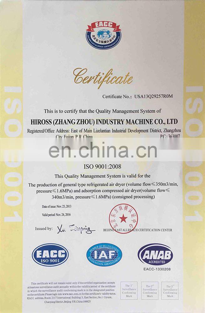 HIROSS company occupies a 1500 square meter manufacturing field,focus on advanced technology,combining with internationally processing technology to develop and manufacture a series of high performance,low vibration, quiet operation and trouble free equipment.A series of HIROSS products have passed ISO9001,CE,2008 international quality system certification.
