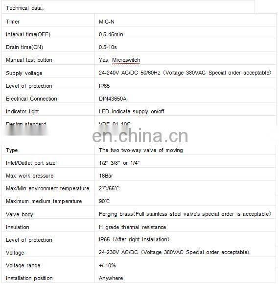 Electromagnetic Atlas Valves for Laundry Timer Auto Air Transformer Carel Compressor Drain Valve