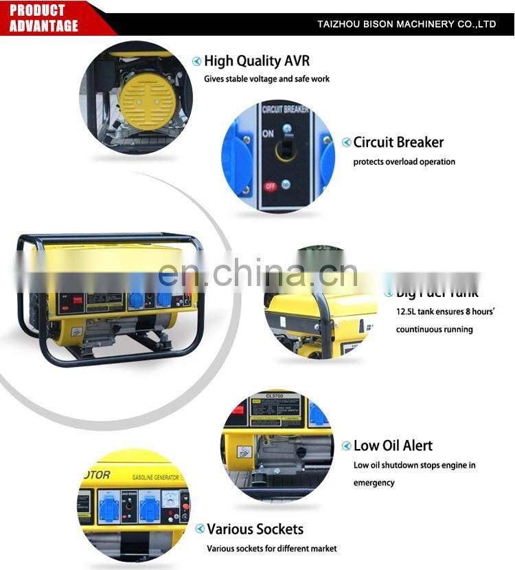 Bison China 1Kva-3Kva 3Kw 7.5Hp Ac Cam Professional Portable Power Electric Start Petrol Gasoline Generator