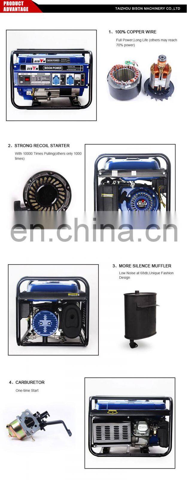 Bison China 1Kva-3Kva 3Kw 7.5Hp Ac Cam Professional Portable Power Electric Start Petrol Gasoline GeneratorNegotiableMOQ: 1