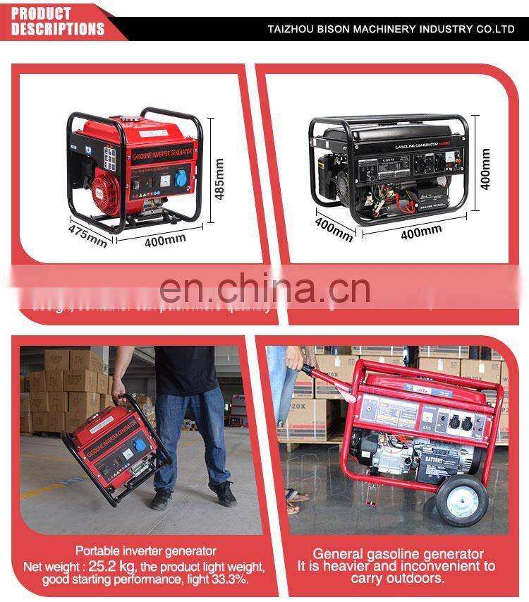 Bison China 1Kva-3Kva 3Kw 7.5Hp Ac Cam Professional Portable Power Electric Start Petrol Gasoline GeneratorNegotiableMOQ: 1