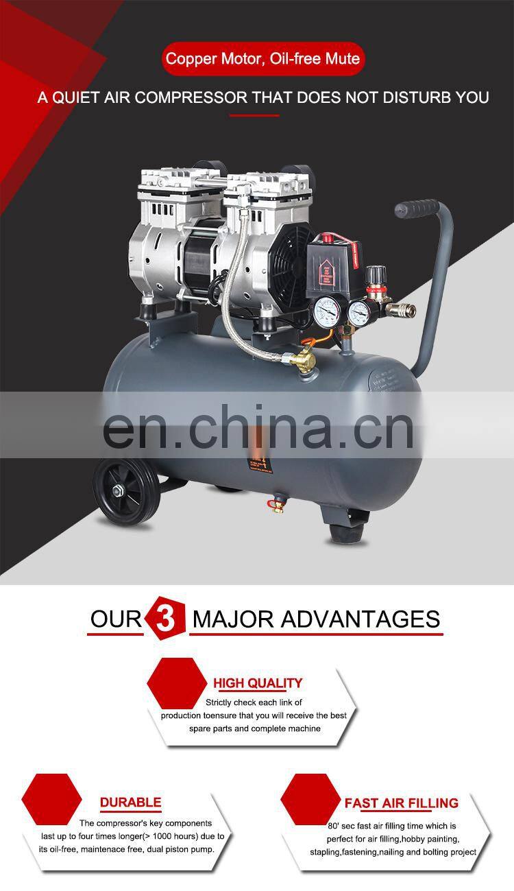 Bison China 1500W Quiet Air Compressor Oil Less Piston Pressure 8Bar 6.3 Gallon Oil Free Silet Air Compressor