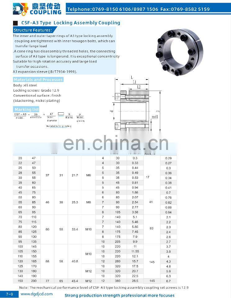 CSF-A7 Type Expansion Coupling Assembly Keyless Self Lock Locking Assembly