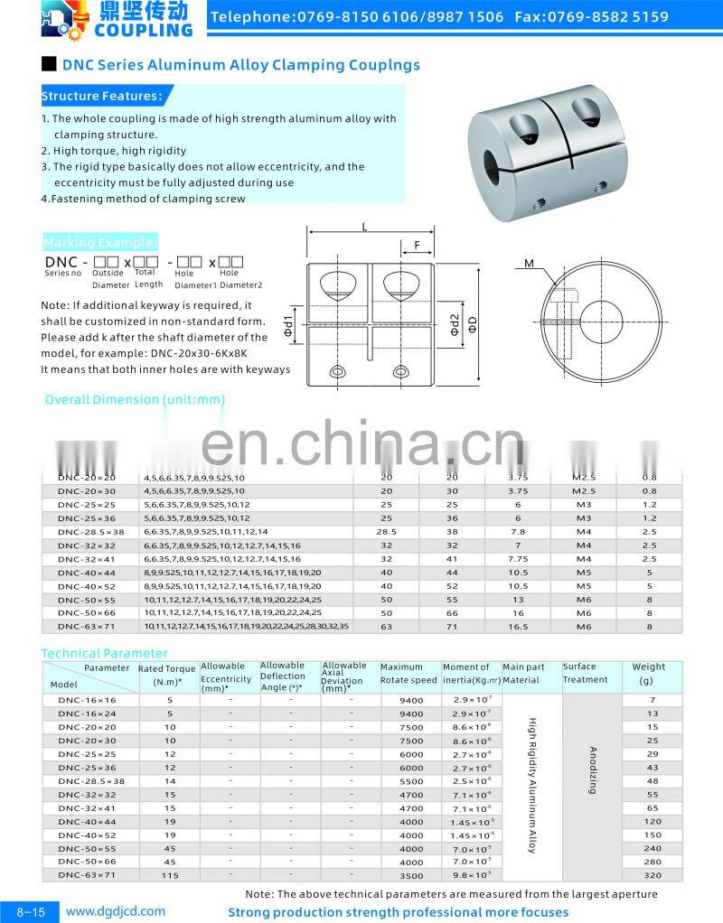 DNC Clamping Type Coupling High Rigidity Clamp Coupling Motor Shaft Couplings