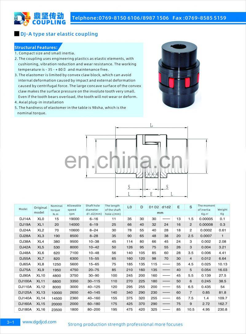 Steel Jaw Flexible Shaft Coupling DJ-A Model Made in China Rotex Jaw Flexible Coupling ge 19 24 28 38 42 48 55 65 75 90