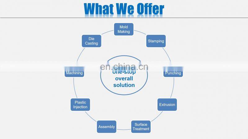 Mold making, die casting, CNC machining, stamping, plastic injection, assembly, and surface treatment.