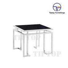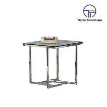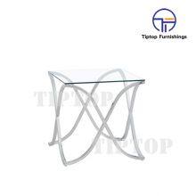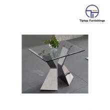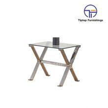 - Hot Sale Glass Square End Table With Shiny Stainless Steel Frame