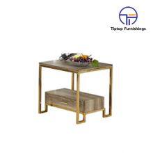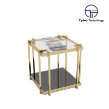 Modern Luxury Golden Stainless Steel Marble Top Coffee Table End Table