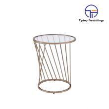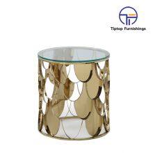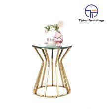 - Luxury Modern Design Stanieless Steel Glass Top Round Side Table Polished Gold End Table