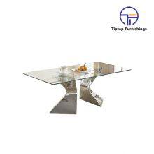Simple Style Clear Glass Top Table Stainless Steel x Base Sofa End Table