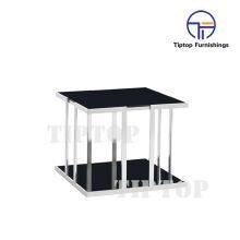 Hot Sale Glass Square End Table With Shiny Stainless Steel Frame