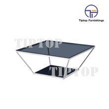 High Quality Modern Luxury Living Room Center Tempered Glass Coffee Table Stainless Steel Creative Square End Table