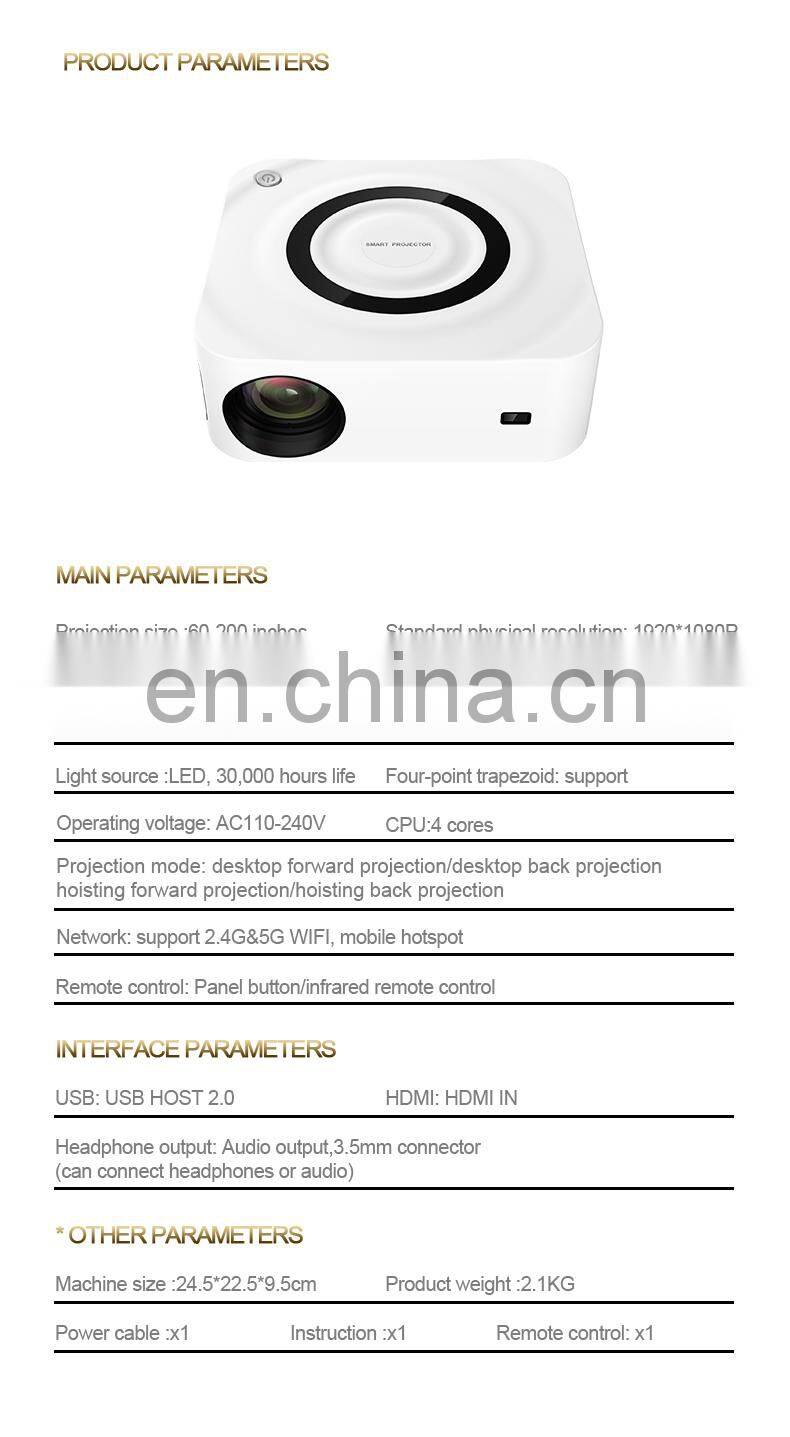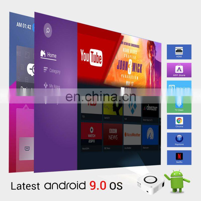 Home > Products > smart home > 2022 New 7500 Lumens 350 ANSI 2GB 16GB Dual Band Wifi Hi-Fi Stereo1080P Smart Android Laser 4k Video Projector Y9