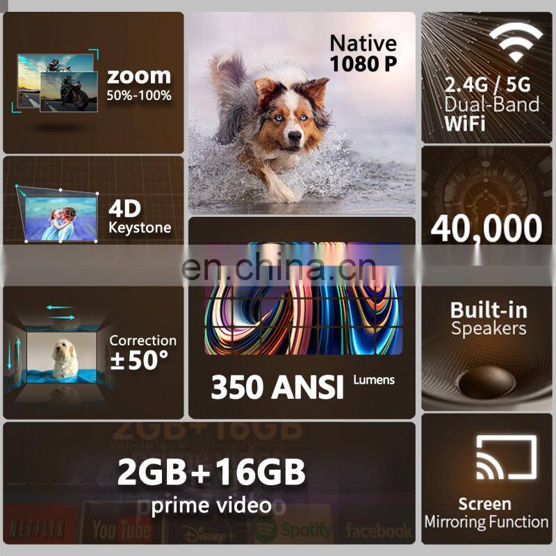 2022 New 7500 Lumens 350 ANSI 2GB 16GB Dual Band Wifi Hi-Fi Stereo1080P Smart Android Laser 4k Video Projector Y9