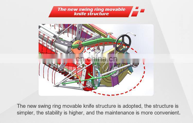 * It has high ability to pass through the paddy field with good performance, because of the special smooth belt drive, huge threshing cylinder and three layers vibrating screen.