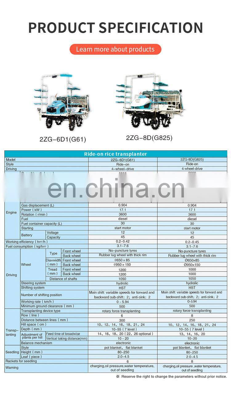 Agriculture Use High Quality Seeders JOFAE High Speed Riding Rice Transplanter 8 Rows G825NegotiableMOQ: 1
