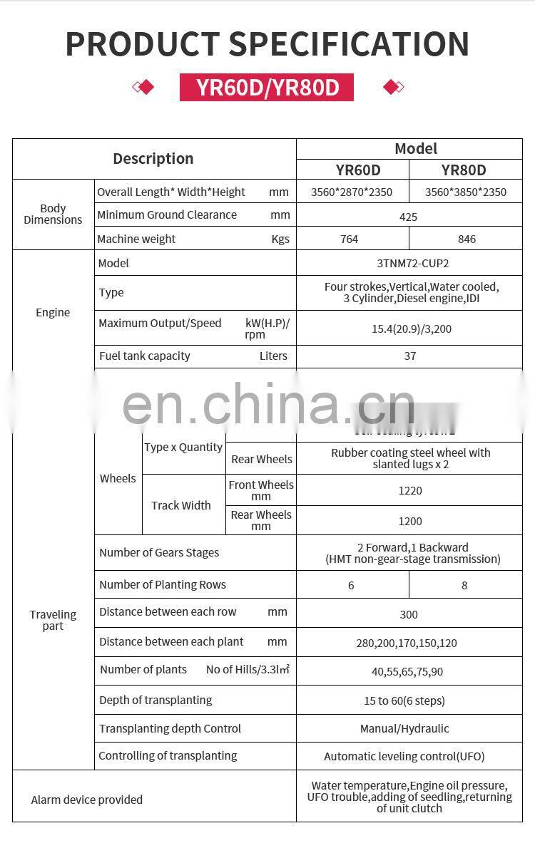 Competitive High Quality Transplanter YR 80D High Speed Riding Rice Transplanter 8 Rows