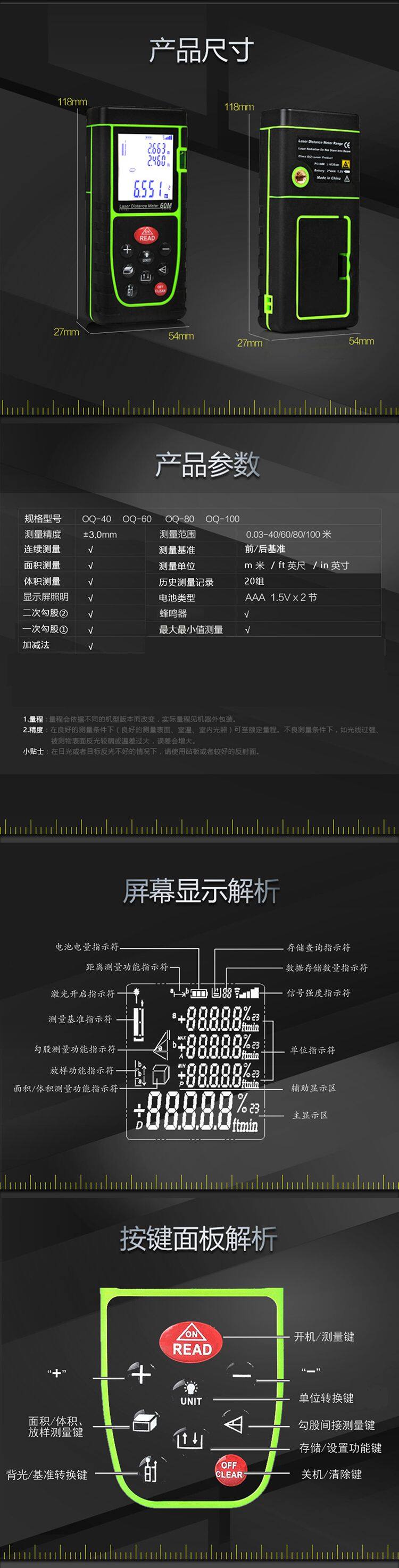 40m 60m 80m 100m Laser Measure Rangefinder Laser Distance Meter