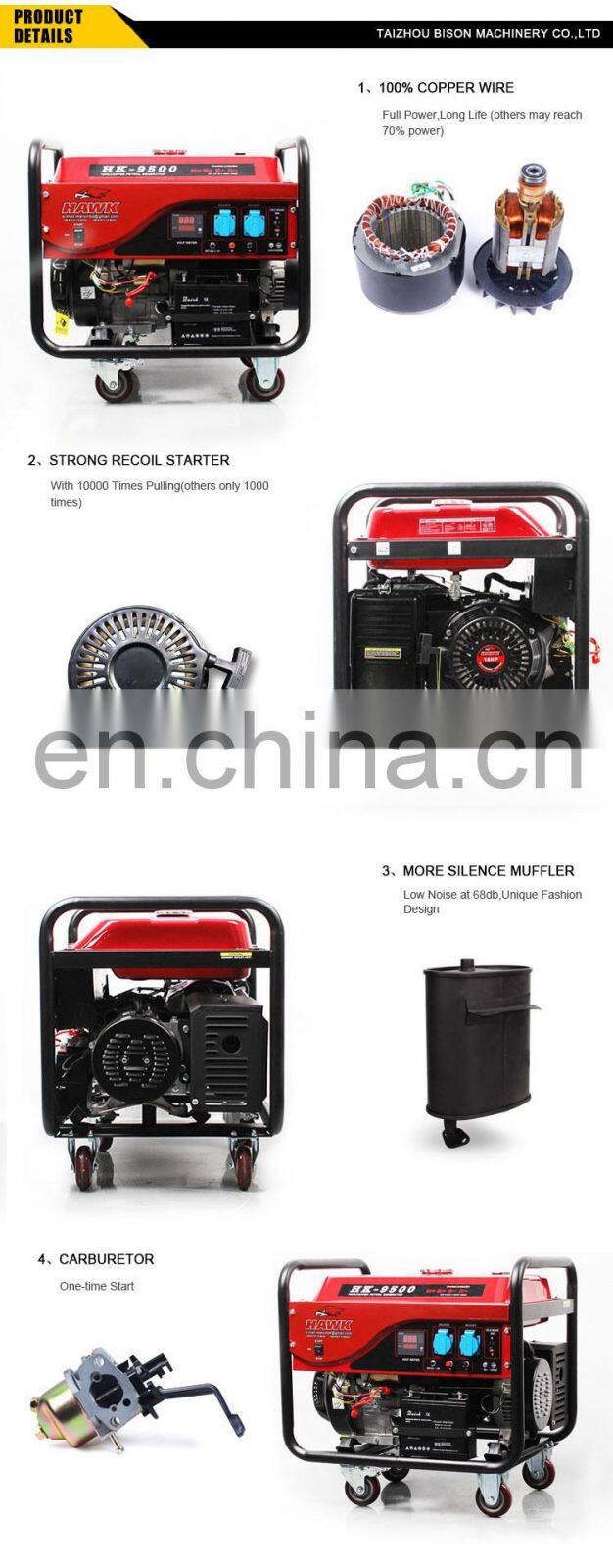 BISON China 7.0kw Gasoline Generator Single Cylinder Four Stroke Power 7 kw GeneratorNegotiableMOQ: 1