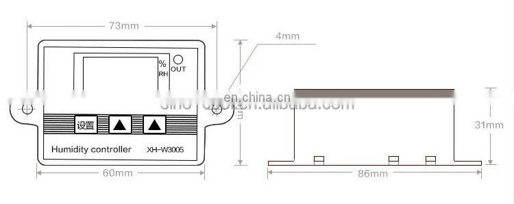 Thermostat connected to the circuit, connected to the power supply, digital tube shows the current humidity setting starting temperature. Press the "up" button to display the startup temperature, long press the "up" button for about 3 seconds, and the startup humidity number flashes, which can be set through the up and down keys.