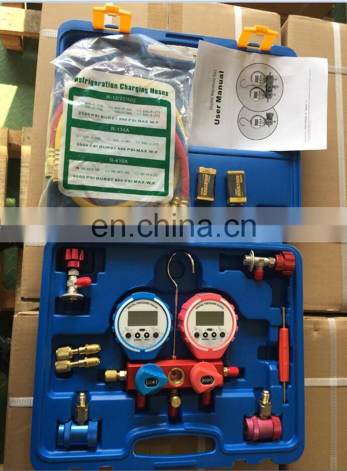 Metal handle, stainless steel oil meter, thickened shockproof meter sleeve, 7PCS, sealing ring box, high pressure resistance, high quality refrigerant meter, high strength plastic box