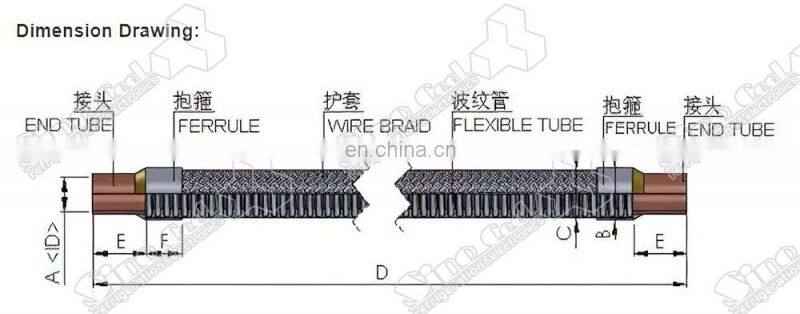 SIKELAN brand vibration absorber is made up of interior-stainless steel corrugated pipe, exterior-stainless steel wire braid. Both stainless steel corrugated pipe and wire braid is to be welded with copper end tubes. Each vibration absorber is made the pressure test and vacuumized.