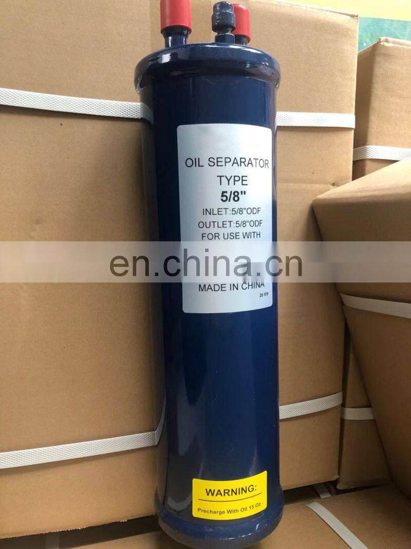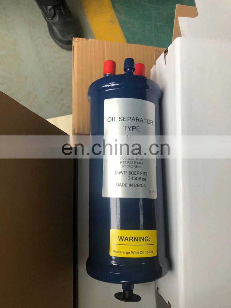 The oil separator is capable of separating the oil from the refrigerating gas mixture so as to improve the performance of refrigerating air conditioning system and save energy. Its function enters the inlet of the oil separator from the compressor refrigerant and oil mixture, this mixture flows through a filter and a baffle device, making the oil particles aggregate and drop to the bottom of the oil separator.