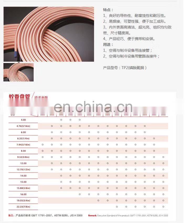 High quality seamless copper pipe coil for air conditioner and refrigeration