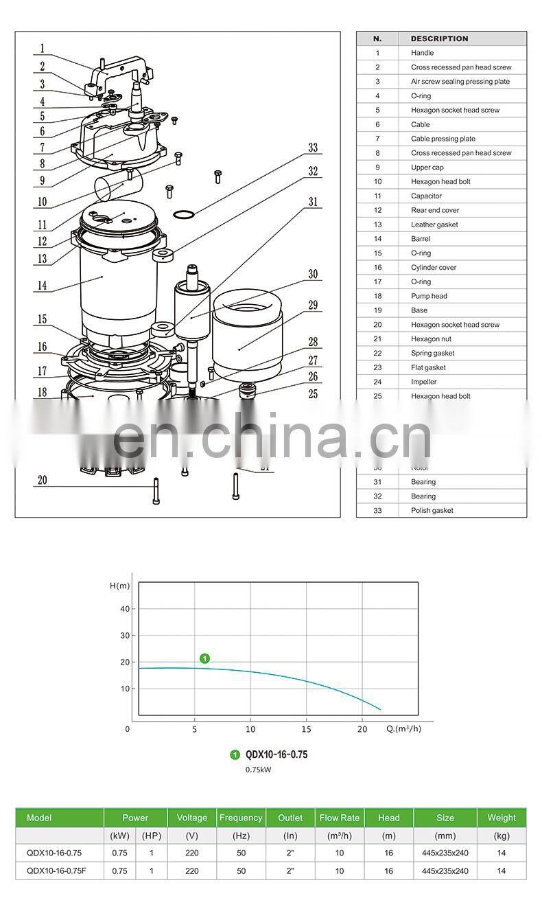 High Lift Large Flow Domestic 0.75 KW 1HP Submersible Clean Water Pump |