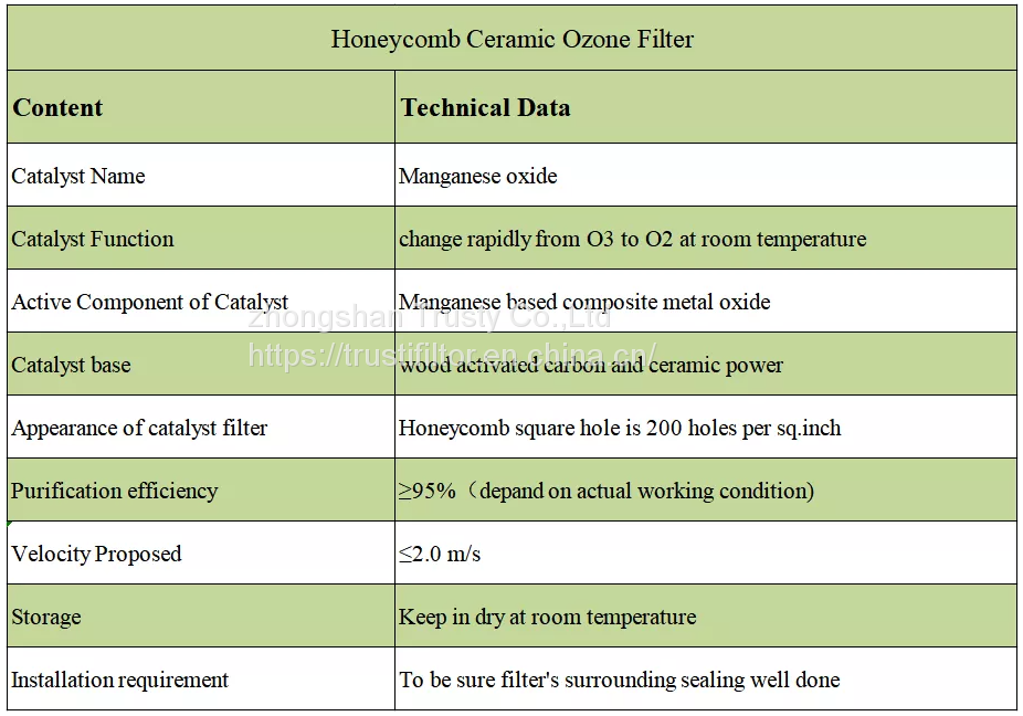 1. High efficiency for ozone removal;