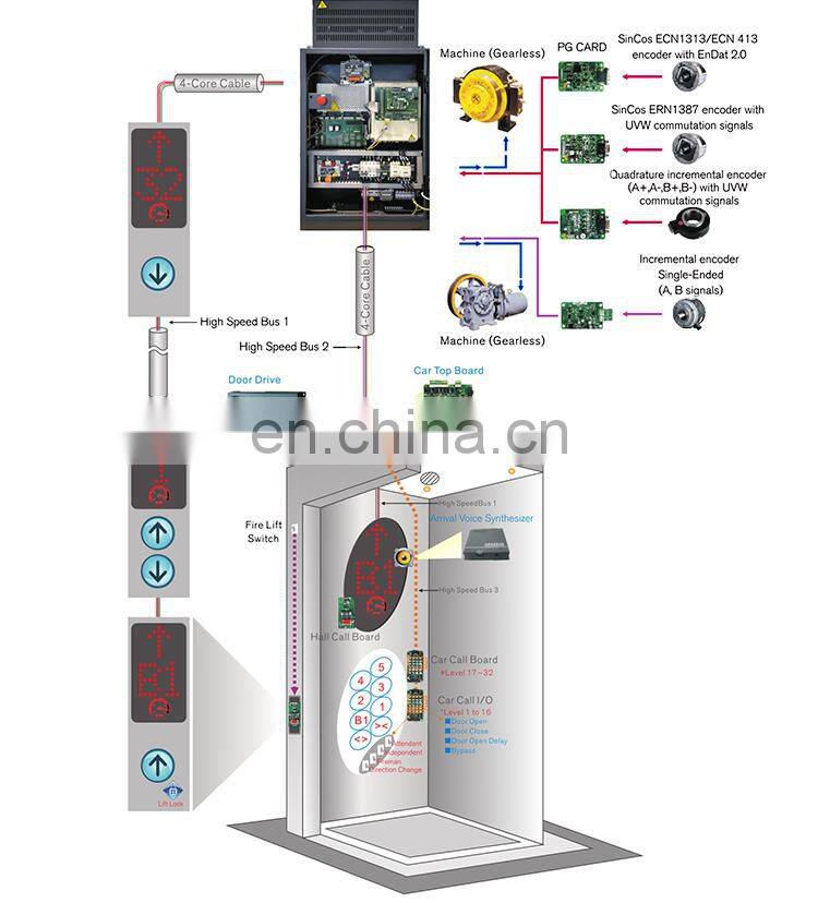 Integrated and Separated Controlling Cabinet,Yaskawa L1000A Inverter, Elevator Display,COP&LOP&HOP, Elevator Button, Flat Traveling Cable etc.