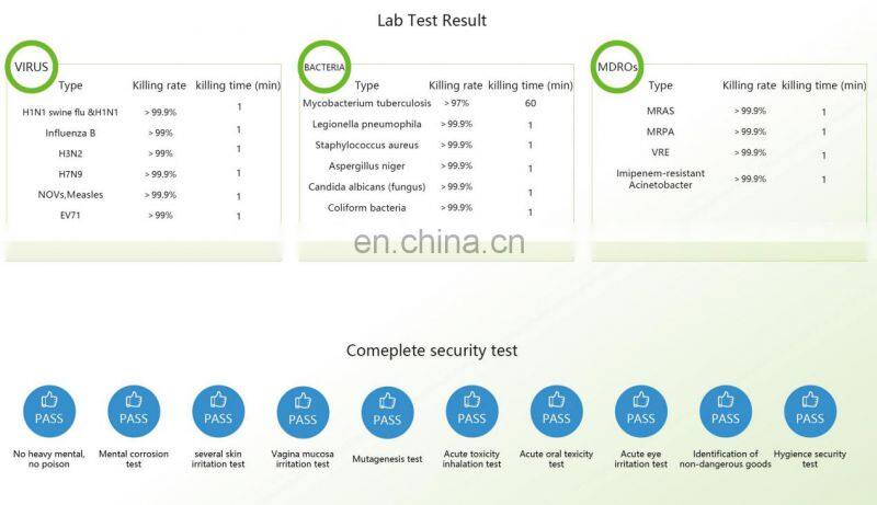Virus (MERS-CoV) killing efficiency | 98% |