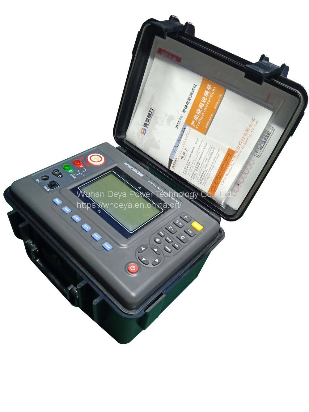 DY2575 series insulation resistance tester, also known as megger, high-voltage insulation resistance tester, is used for insulation resistance test. This instrument has the functions of LCD large screen gray and white backlight display, data storage, data query, alarm, automatic shutdown, etc. It also has the functions of measuring DC voltage, AC voltage, absorption ratio and polarization index. The whole machine is beautiful and high-grade, with wide range, high resolution, convenient operation, convenient carrying, accurate, reliable, stable performance and strong anti-interference ability. Moreover, it has a shockproof, dust-proof and moisture-proof structure, and is a commonly used and indispensable instrument for the installation and maintenance of telecommunications, electric power, meteorology, machine rooms, oil fields, mechanical and electrical equipment, and industrial enterprise departments that use electricity as industrial power or energy. It is suitable for measuring the resistance of various insulating materials and the insulation resistance of transformers, motors, cables and electrical equipment. At the same time, it has the function of stepping voltage regulation to output a variety of different voltage levels (for example, 15KV models can produce 12KV levels, which can be used more widely).