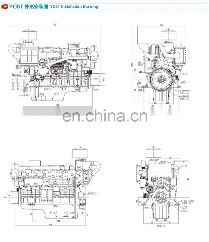Yuchai High Power YC4F YC6T YC6K YC6C YC8T 80-1600HP Marine Diesel Engine