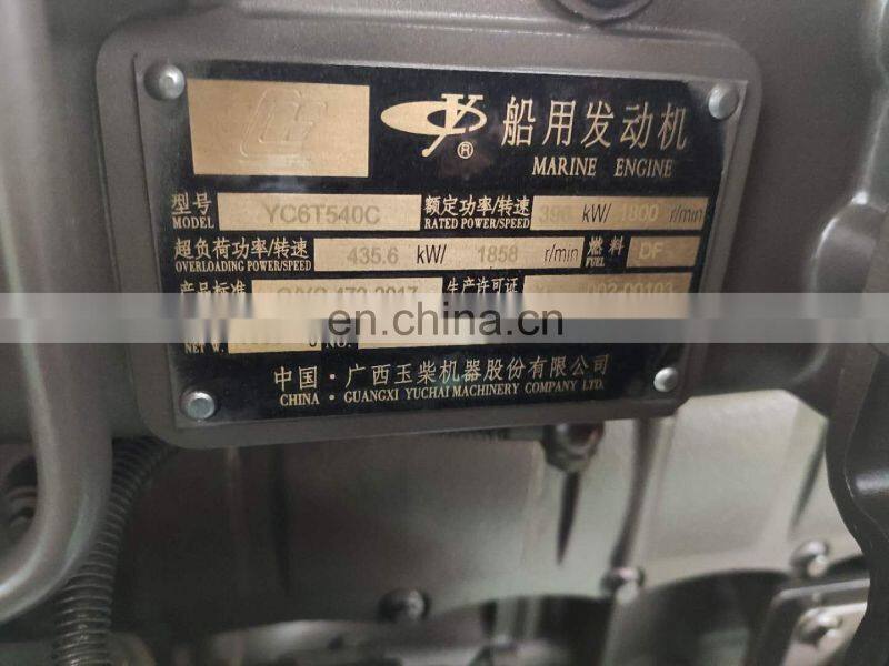 Yuchai High Power YC6T540L 540HP 1800RPM Marine Diesel Engine for Fishing Boat