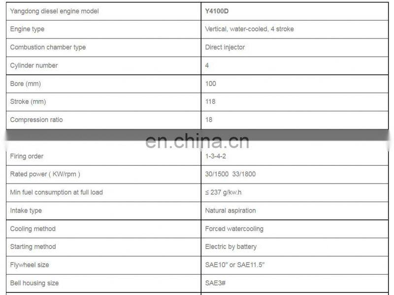 New Original 40HP YangDong Diesel Engine Y4100D With Silent Type Generator