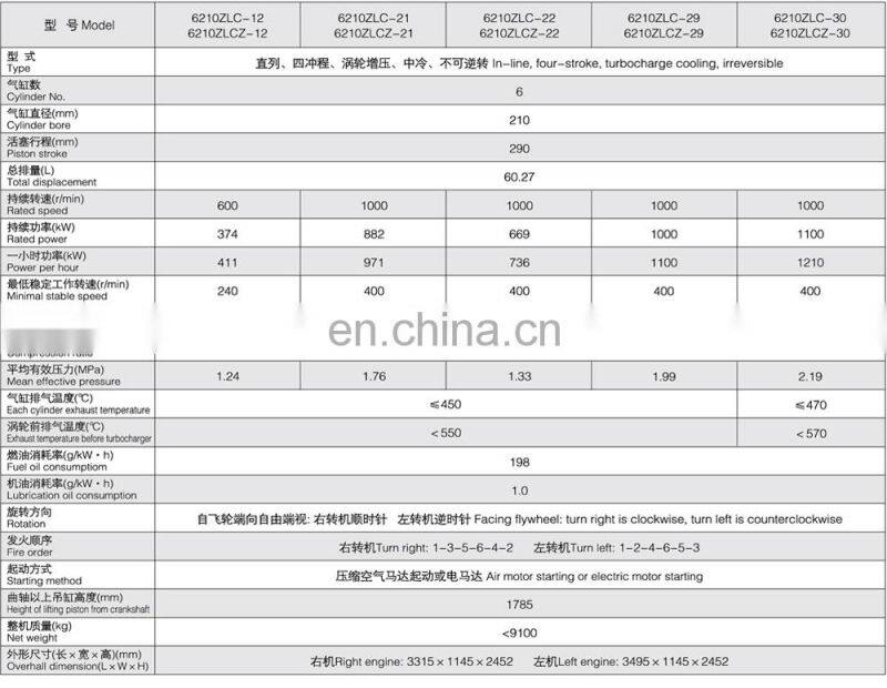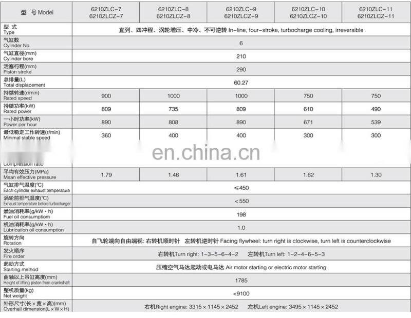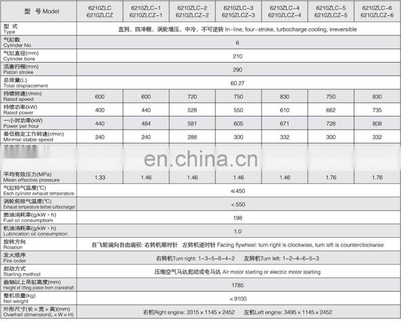 Product name | Zichai 1100HP 1000rpm 6210 6210ZLC 6 cylinders medium-speed diesel engine for cargo Ship |